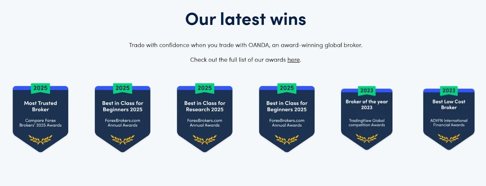 بروکر Oanda به دلیل دریافت جوایز متعدد از نهادهای معتبر در سالهای اخیر موفق شده جایگاه خود را در بازار فارکس ارتقا دهد. در تصویر زیر، تعدادی از آخرین جوایز دریافتی بروکر اوآندا را مشاهده میکنید: