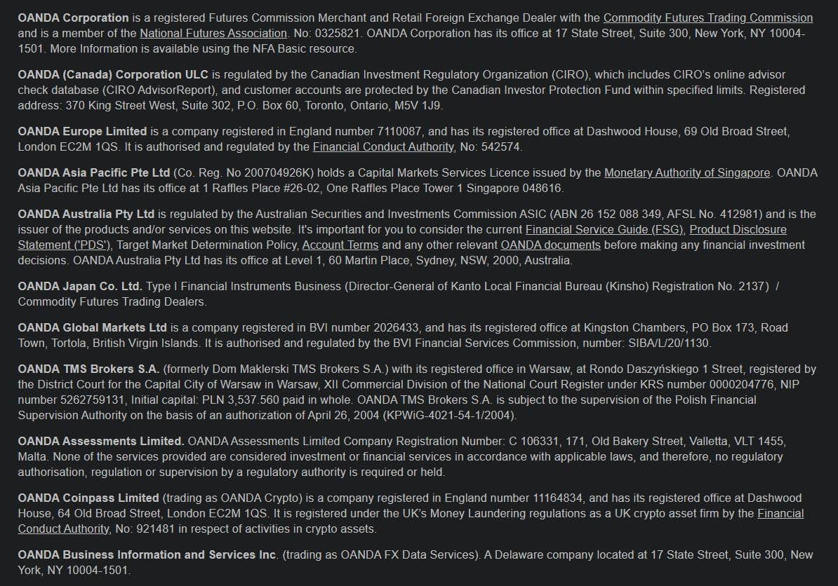 بروکر Oanda در چندین کشور دنیا دفتر اختصاصی دارد و توسط نهادهای قانونی در این کشورها تحت نظارت است. در ادامه فهرست رگولههای بروکر Oanda را مشاهده میکنید: